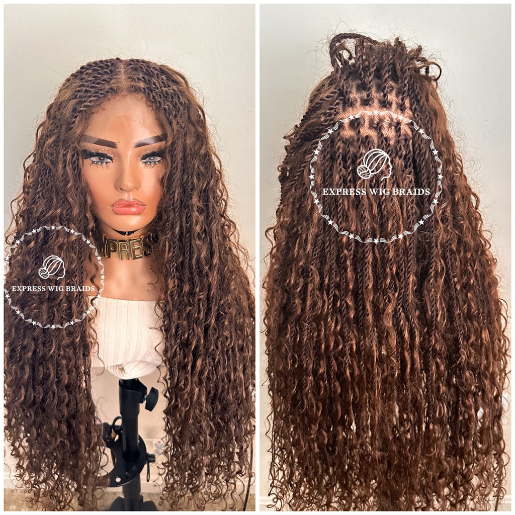 . Do not deep in hot water the following types of braid wigs; passion twist, spring twist, micro loose braid/twist such as wig Erica or Asia, tree braid wig, silky Spanish twist, French twist, the human hair boho curls on braid wig to avoid the curls from straightening out, synthetic curls on bohemian braided wig, dread locs, butterfly locs, faux locs, goddess locs and crochet locs.