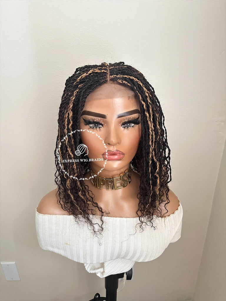 Type: Handmade. This hair is guaranteed to last for more than 10 years. This is 100% 12A Virgin Human Hair Grade that can be dyed, tinted, curled in hot iron, steamed, conditioned and much more. Can be styled around the closure lace but can’t be put up in a bun. Order the full lace version of any of our micro braid/twist human hair wig to be able to put it up in a bun. Kindly order in the custom section if they are sold out here in the ready to ship section.
